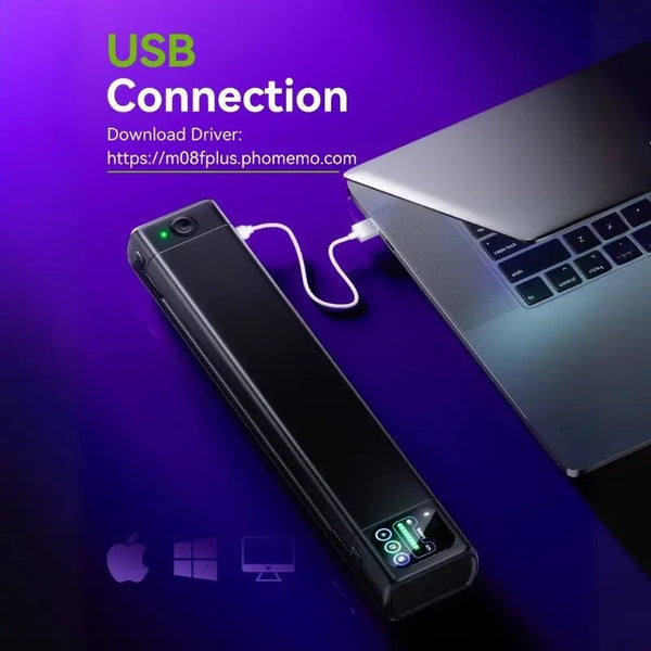 Verbinden Sie Ihren Phomemo M08F Plus per USB-C oder Bluetooth und starten Sie den Druckvorgang in Sekundenschnelle – egal ob Sie einen Mac, PC, ein iPhone oder ein Android-Tablet verwenden. Wechseln Sie nahtlos zwischen kabelgebundenem und kabellosem Modus für einen reibungsloseren und schnelleren Workflow beim Erstellen von Tattoo-Schablonen.