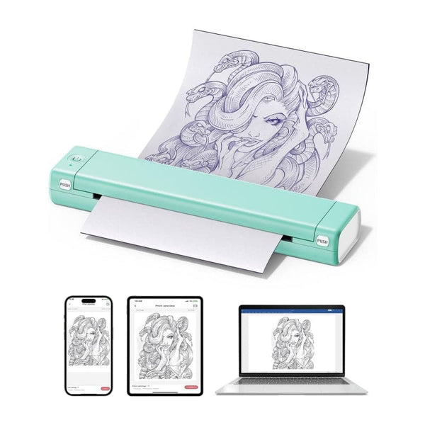 Hohe Kompatibilität - Dank seiner Kompatibilität mit verschiedenen Geräten wie Smartphones, Tablets, Laptops und Desktop-Computern macht der M08F-Thermotattoodrucker das Entwerfen und Drucken für Tattoo-Enthusiasten einfacher denn je. Er ist mit verschiedenen Systemen kompatibel, darunter Android, iOS, Windows, MacOS und ChromeOS
