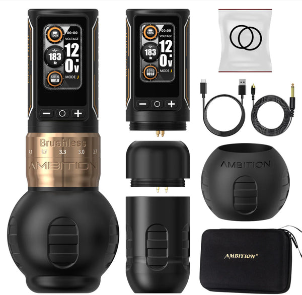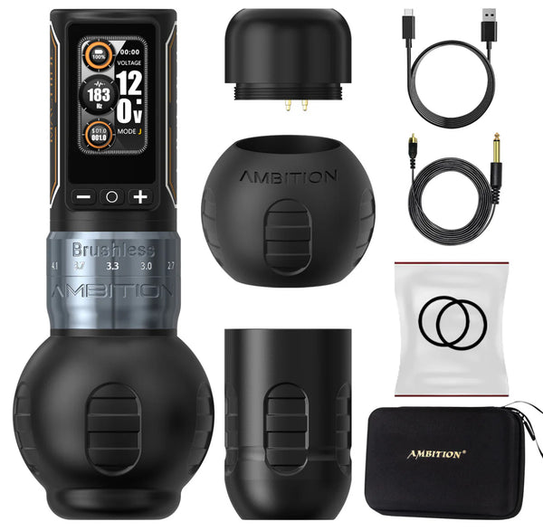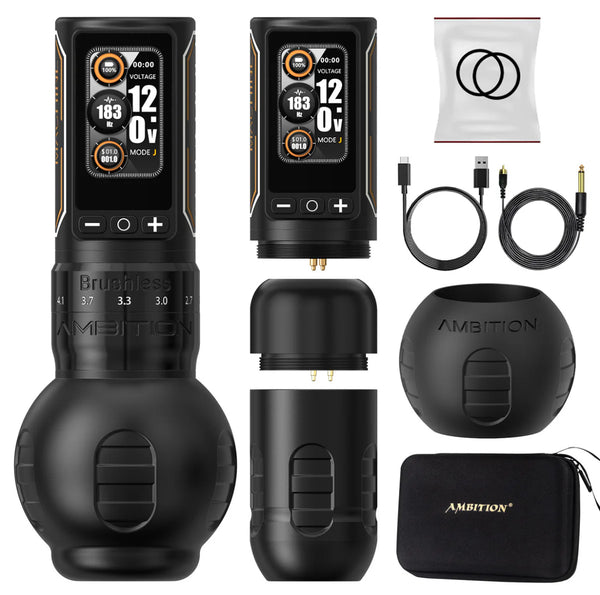 Diese Tattoo-Maschine im futuristischen Cyberdesign wird von einem leistungsstarken 2400 mAh Akku betrieben und bietet 5–6 Stunden Laufzeit. Das OLED-Display zeigt die Spannung (1–12 V)