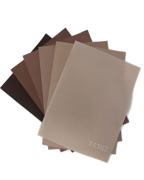 Skinz™ empfiehlt, die Übungshaut bei Zimmertemperatur aufzubewahren, extreme Hitze oder Kälte zu vermeiden und das Papier bis zur Verwendung befestigt zu lassen, um Schmutz und Kratzer zu vermeiden.