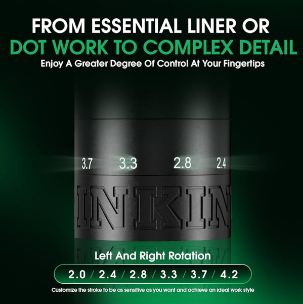 • Einstellbare Hublänge: Mit sechs einstellbaren Hublängen von 2,0 mm bis 4,2 mm können Sie Ihre Maschine an jeden Tätowierstil anpassen.